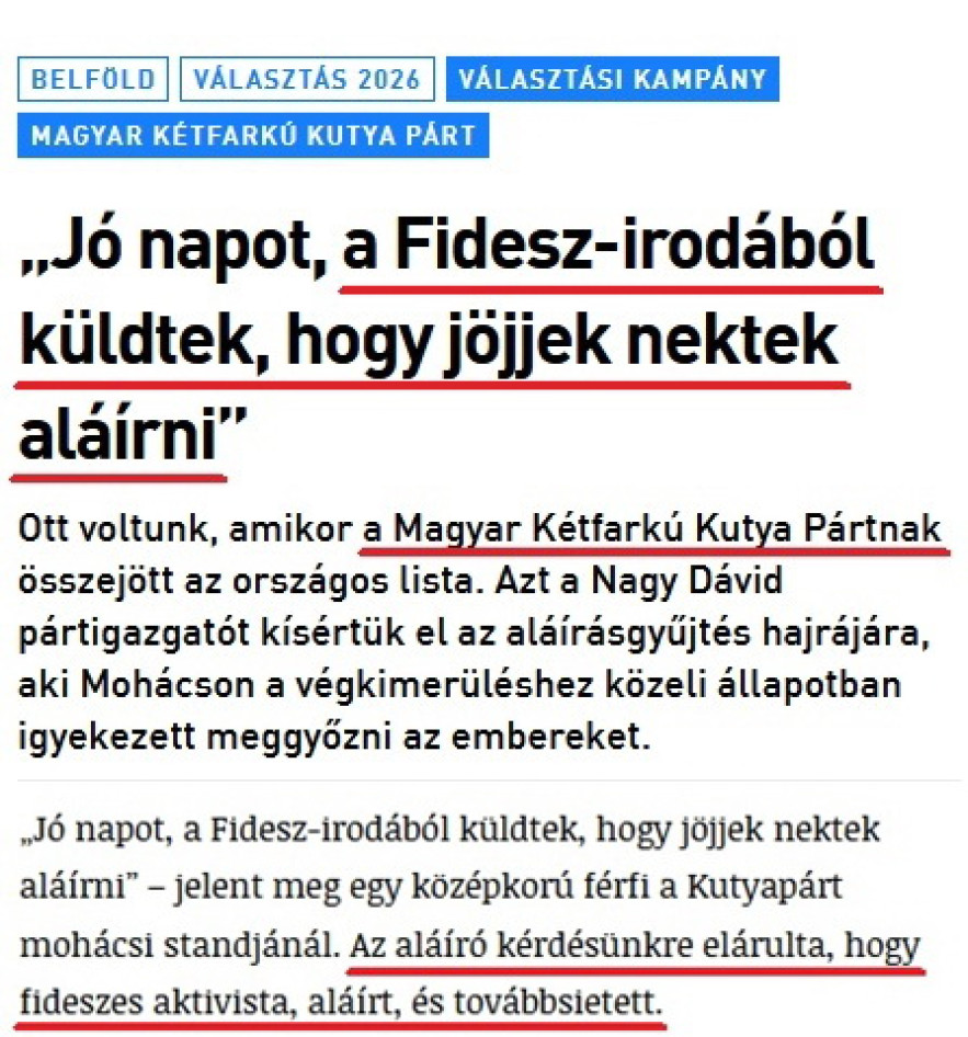 Ahelyett, hogy a Kutyapárt ezután meglapult volna, kiált az egyik tagjával, és felmondatta vele azt a rizsát, hogy ők milyen tisztességesen gyűjtötték az ajánlásokat, holott a sajtóban is az olvasható, hogy a Fidesz segített nekik!